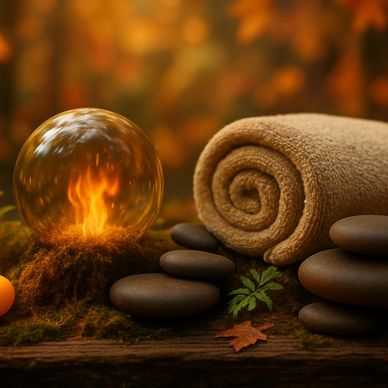 Soothing warm stones awaken Fire’s warmth while grounding reflexology channels Earth’s stability.
